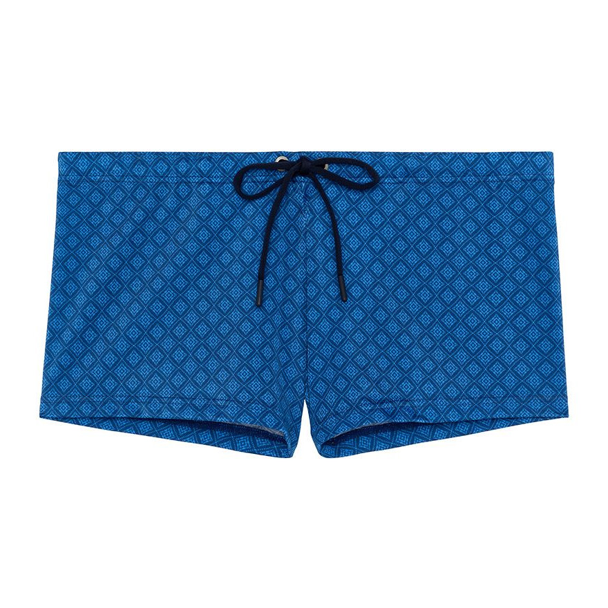 Hom zwemboxer Hendaye blue print De HOM Hendaye Swim Shorts in blue print combineren moeiteloos sportieve elegantie met hoog draagcomfort. Deze stijlvolle zwembroek is vervaardigd uit een hoogwaardige stofmix van 80% polyamide en 20% elastaan, wat zorgt voor een perfecte, nauwsluitende pasvorm en een sneldrogend effect, ideaal voor actieve zomerdagen aan het strand of bij het zwembad. Het frisse blauwdesign met grafische print geeft de short een moderne, energieke uitstraling. Dankzij de geïntegreerde voering en het verstelbare trekkoord in de tailleband biedt deze zwembroek optimale ondersteuning en draaggemak, of je nu zwemt, sport of relaxt.